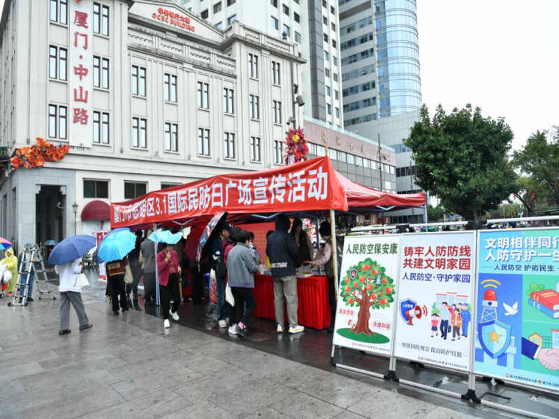春日鹭岛,生机盎然。在厦门市思明区中山路侨批广场,第54个“3·1国际民防日”主题活动现场人头攒动。“大家看,压迫止血要按准这个位置。”民防知识小课堂上,专业讲解员手把手向市民传授急救实操技能。家住中华街道附近的张阿姨直言:“学会识别防空警报,知道家里该备哪些应急物资,对于老年人而言至关重要。”这场贴近民生的宣传活动,是厦门全民国防教育最真实的底色。